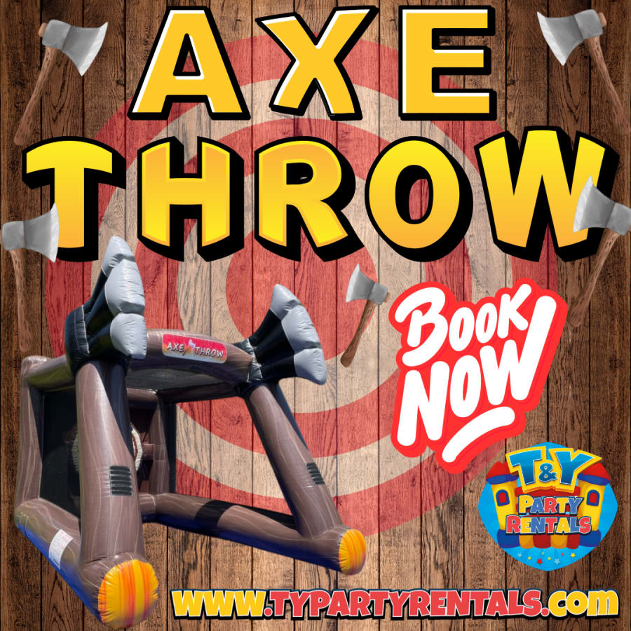 Bring excitement and friendly competition to your next event with our Inflatable Lumberjack Axe Throwing game from T and Y Party Rentals. This interactive attraction lets guests test their aim using soft foam axes that safely stick to a Velcro target, making it fun and suitable for teens, adults, and families.