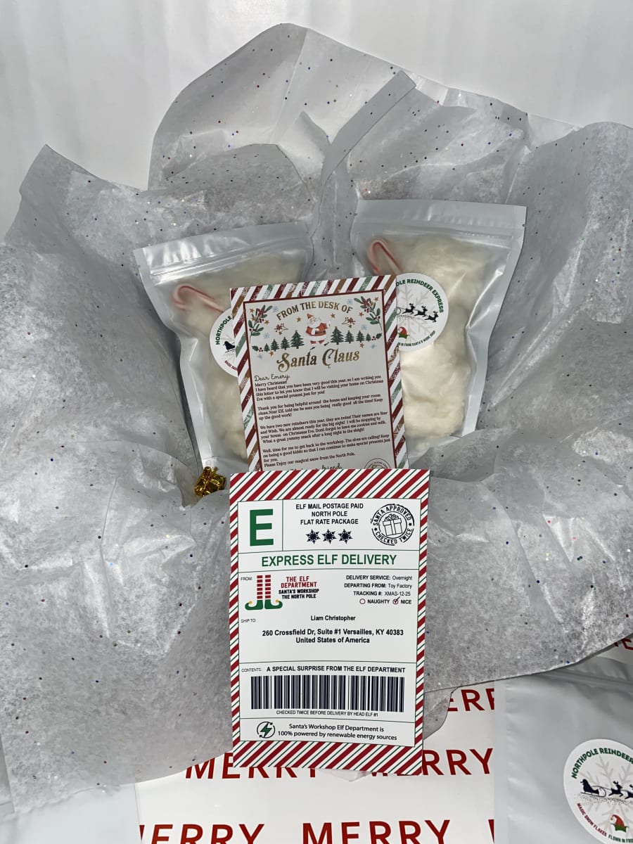โค๏ธ ๐งโ๏ธELF ON THE SHELF๐ญ ๐ ( Cotton Candy edition, aka magical snowflakes sent from the North Pole) ๐ Get the kiddos their fully customizable gift box all through December. ๐ Not doing an elf of the shelf? No problem! โ We also have : ๐๐ ๐ปSANTA๐ ๐ป๐ packages available! For $20.00 our Christmas boxes include : โค๏ธ Mailing box with tissue paper & 4 tiny gift boxes ๐Personalized mailer sheet to the Name(s) of your children ๐ง๐ป๐ง๐ผ โค๏ธ๐ฉ Your address ๐Note from Santa personalized to their names as well. ๐ ๐ป๐ง๐ฝ & our favorite! โค๏ธ(1) Freshly made birthday cake flavored COTTON CANDY bag with 1 mini candy cane. โ๏ธAdd another extra bag for just $5.00 more. Free local pickup in Versailles 40383 Ready to order? CContact Usontact us today!